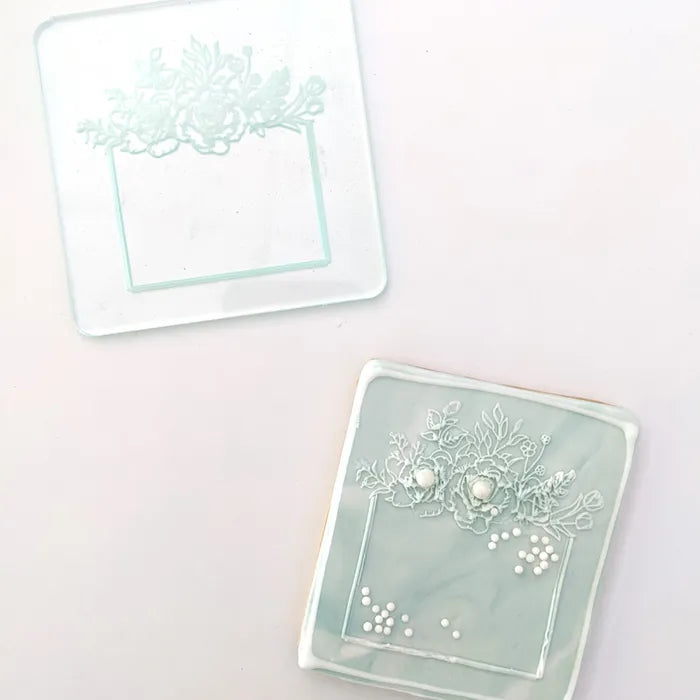 This Floral Wreath Square Frame Cookie Debosser Stamp is great for stamping on cookies, fondant and soap. Part of our boho style for a range of occasions.Ā