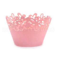 These Flower Pearl Rose Lace Cupcake Wrappers are great for dressing up your cupcakes. Each pack contains 12 Flower Pearl Rose Lace Cupcake Wrapper flat packed. Wrappers bend and hook around standard size cupcakes. Made out of sturdy pearlized paper. Approximate folded size: 2 inches down, 3.25 inches diameter, 2 inches high. For presentation purposes only. Do not bake your cupcakes in these wrappers.
