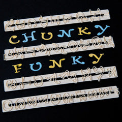 This FMM Chunky Funky Alphabet and Numbers Tappit set is similar to FMM Funky Alphabet and Numbers Tappits but in a smaller chunkier size. The smaller size means that messages will fit perfectly on your cakes. This set includes 4 plastic cutter tappit with Alphabets A-Z and Numbers 0-9. The letters are approximately 1.5cm high.
