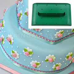 This Press Ice Polka 4 tool by FMM is a versatile tool to help you mark dots that are perfectly spaced. With the dots laid out, you now have a perfect grid to pipe pearls of royal icing. You can also place edible pearls to give it a elegant look. FMM Press-Ice Polka 5 is designed to be used horizontally for best results. Used in this way, a seamless and continuous pattern can be achieved by placing the first row of pins into the last row if holes as you work your way around the cake. Held horizontally, FMM Press-Ice Polka 4 will impress a pattern into the side of a 7.5cm (3in) high cake from top to bottom.