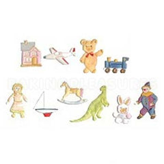 This toys tappit cutter strip set by FMM is great for cutting out toys themed shapes out of fondant, gumpaste, flower paste or modelling paste. They can also be used with craft clay. This set consist of 2 tappits with 9 different designs (Doll House, Plane, Teddy, Train, Doll, Yacht Rocking Horse, Dinosaur, Rabbit & Clown). Decorative designs measures between 27 & 55mm approximately. This FMM toys tappit comes with easy to follow instructions.