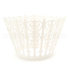 These Gate Pearl Creamy White Lace Cupcake Wrappers are great for dressing up your cupcakes. Each pack contains 12 Gate Pearl Antique White Lace Cupcake Wrapper flat packed. Wrappers bend and hook around standard size cupcakes. Made out of sturdy pearlized paper. Approximate base measurement is 5.5cm, opening top diameter 7.8cm and 5cm in height. For presentation purposes only. Do not bake your cupcakes in these wrappers.