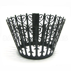 These Gate Pearl Gunmetal Black Lace Cupcake Wrappers are great for dressing up your cupcakes. Each pack contains 12 Gate Pearl Gunmetal Black Lace Cupcake Wrapper flat packed. Wrappers bend and hook around standard size cupcakes. Made out of sturdy pearlized paper. Approximate base measurement is 5.5cm, opening top diameter 7.8cm and 5cm in height. For presentation purposes only. Do not bake your cupcakes in these wrappers.