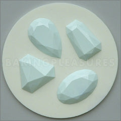 Easily create gem shape decorations using this Gems sugarcraft silicone mould. There are 4 cavities allowing you to create gems in 4 different shapes. This gem silicone mould is made out of a silicone system specially formulated for use in food and confectionary and complies to FDA regulations. Mould diameter measures approximately 75mm. This gems silicone mould is ideal for use with flowerpaste, sugarpaste, marzipan and more.