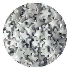 These silver stars edible sprinkles with a glimmer finish are great for adding a touch of glamour to your cupcakes, cakes, bakes and cookies. Comes in a pack of 80g. Each star measures approximately 7-8mm. Made in Germany.