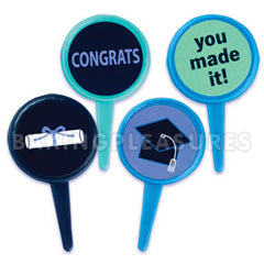 These Graduation Labels Cupcake Picks are an easy and cost effective way of decorating your cupcakes or desserts. Simply stick one of these onto your cupcake and you are ready to go. Great for Graduation themed cupcakes and desserts. Each pack contains 12 Graduation Labels Cupcake Picks randomly picked. There are four different designs in this set. Not edible.