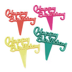 These colourful Happy Birthday Cupcake Picks are an easy and cost effective way of decorating your cupcakes or desserts. Simply stick one of these onto your cupcake and you are ready to go. Each pack contains 12 Happy Birthday Cupcake Picks randomly picked. There are 4 different colours in this set, green, pink, orange and yellow. *NOTE: Purple pick is no longer available* Not edible.