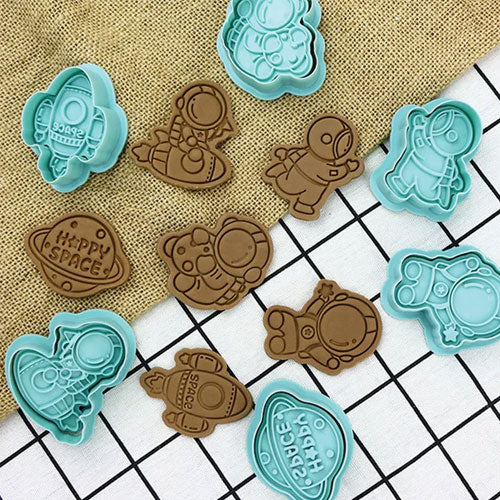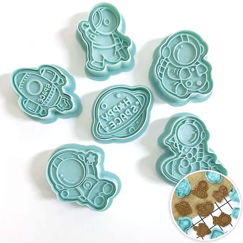 This Happy Space cookie cutter and embosser set includes 6 Happy Space themed cutter and stamps. Use these cutters to shape your cookie, then gently press the stamp into the dough to create imprinted detailing. Cutters measures approximately 4cm wide x 5.5cm tall.