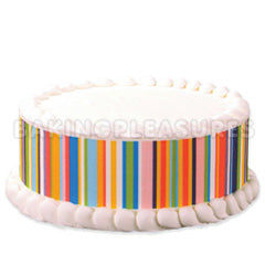Create a colourful side design with these beautiful Happy Stripes Edible Designer Prints. Simply wrap them around your cake and your done. They are also great for cake crafting and can be cut into shapes and pieces or applied to fondant, gumpase to create uniquely patterned bows and plaques. Happy Stripes Edible Designer Prints gives the look of a high-end cake without the added time and labor, and cake decorators of all skill levels to easily craft beautiful cakes and confections. When placed on food, edible images absorb moisture and become soft, blending in seamlessly with your culinary creation.