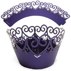 These Heart Pearl Dark Purple Lace Cupcake Wrappers are great for dressing up your cupcakes. Each pack contains 12 Heart Pearl Dark Purple Lace Cupcake Wrapper flat packed. Wrappers bend and hook around standard size cupcakes. Made out of sturdy pearlized paper. Approximate base measurement is 5.5cm, opening top diameter 7.8cm and 5cm in height. For presentation purposes only. Do not bake your cupcakes in these wrappers.