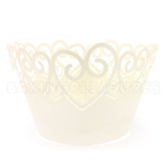 Heart Pearl Ivory Lace Cupcake Wrappers 12pcs