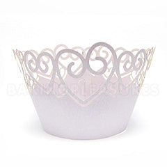 These Heart Pearl Light Purple Lace Cupcake Wrappers are great for dressing up your cupcakes. Each pack contains 12 Heart Pearl Light Purple Lace Cupcake Wrapper flat packed. Wrappers bend and hook around standard size cupcakes. Made out of sturdy pearlized paper. Approximate base measurement is 5.5cm, opening top diameter 7.8cm and 5cm in height. For presentation purposes only. Do not bake your cupcakes in these wrappers.