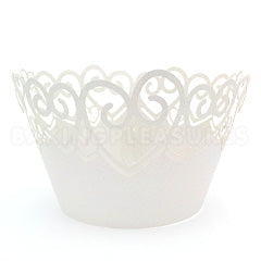 Heart Pearl Light Silver Lace Cupcake Wrappers 12pcs