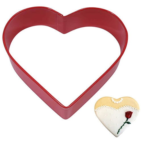 This heart red resin cookie cutter is great for cutting heart shapes for cookies, cake decorating & craft. They are coated in a special red poly-resin coating which makes them attractive, dishwasher safe, and adds a layer of protection from scratches, chips & rust. This heart red resin cookie cutter measures approximately 8.5cm x 8cm.