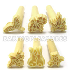 This Holly Embosing Sticks Spring Countryside set contains 6 pcs -wood anemone, wood anemone leaf, dog voilet, rabbits, primroses and primrose leaves. Use these embossing sticks to emboss small patterns on your work. 45mm sized barrel/stick. Made in England.