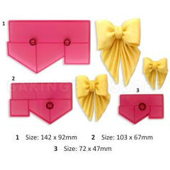 This bows for drapes cutter set by JEM Cutters is a great tool to help you create beautiful bows in 3 different sizes. Perfect for placing between drapes on the side of a cake. This set includes 3 bow cutters measuring: