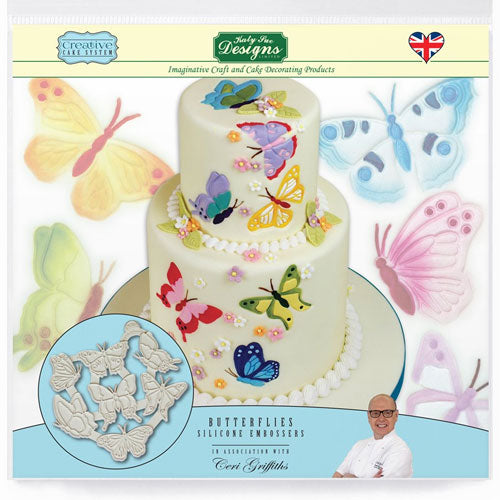 This Butterflies Silicone Embosser by Katy Sue can be used with any medium, edible or non-edible that that allows a design to be pressed into them. Perfect for cake decorating, these flexible embossers allow you to build your own design from the beautiful range of 7 different sized butterflies in this set.