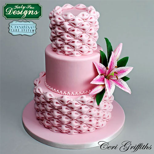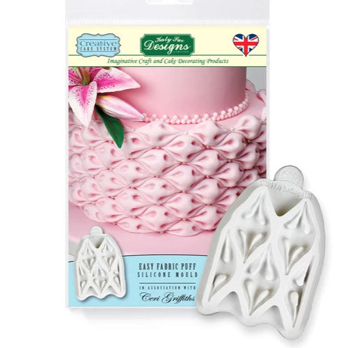 This Katy Sue Easy Fabric Puff Silicone Mould will help you create the most spectacular fabric puffed effect with fondant and sugar paste. Now this amazing technique can be done quickly with perfect uniformity giving a truly professional look to your cakes and cookies. Looks gorgeous with lustre, shimmer or pearls.