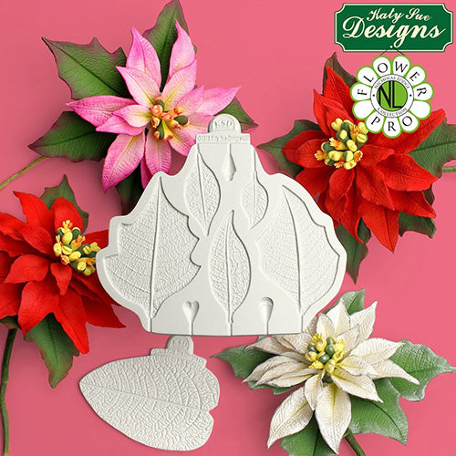 This Katy Sue Flower Poinsettia Veiner & Mould comes with its own silicone back veiner, which allows you to get perfect veined texture on both the front and the back of the petals and leaves. Like all the Flower Pro collection this mould has been carefully thought out to give you amazing detail in either wired or unwired forms in a quick and easy process. Make beautiful poinsettias for your cakes by watching the full length Chef Nicholas Lodge tutorial to see how.