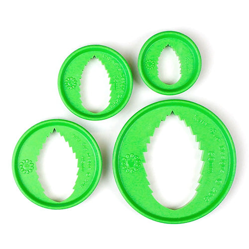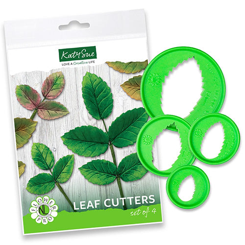 These Katy Sue Flower Pro Leaf Cutters are great for cutting out leaf shapes. This set of 4 Leaf Cutters contains the most popular sizes for leaves, in particular rose leaves, up to a maximum of 60mm in size. The largest leaf cutter is also perfect for a hydrangea leaf. It uses special engineering techniques to ensure the super sharp cutting edge of the design can be produced in a food grade material, so you will get a clean professional pro cut time after time. Made in the UK. FDA compliant food grade material.