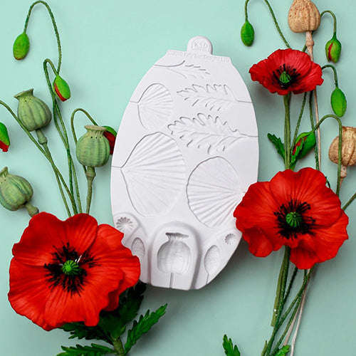 This Katy Sue Flower Pro Poppy Silicone Mould allows you to create perfect petals in a variety of sizes as well as poppy seed heads, buds and leaves in two sizes. Like all the Flower Pro collection this mould has been carefully thought out to give you amazing detail in either wired or unwired forms in a quick and easy process.