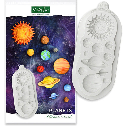 This Planets silicone mould by Katy Sue will make a full solar system, including a highly detailed sun and moon. The planets have all their own recognisable features: the rings of Saturn, the land masses of Earth and the clouds of Venus. This mould is incredibly easy to use and is perfect for a variety of makes, such as kids birthday cakes, unique cookies, elegant home decorations or striking cards.