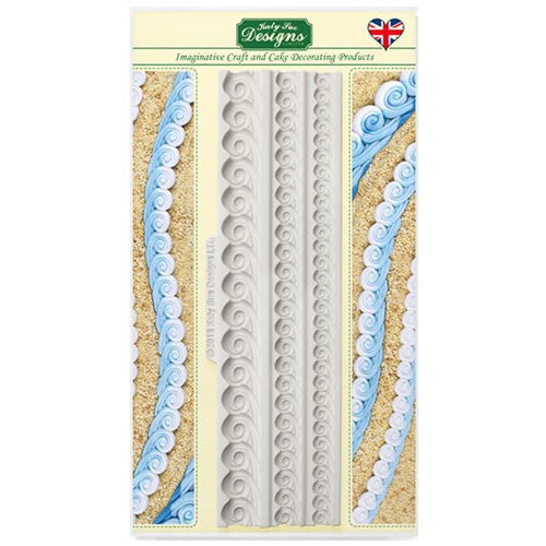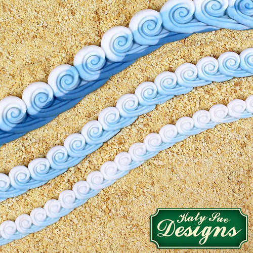 This Sea Swirl Borders Silicone Mould by Katy Sue helps you create wave shape decorative border for cakes, but it works particularly well on seaside or under the sea style cakes. To create the stylised waves use two-tones of colour.
