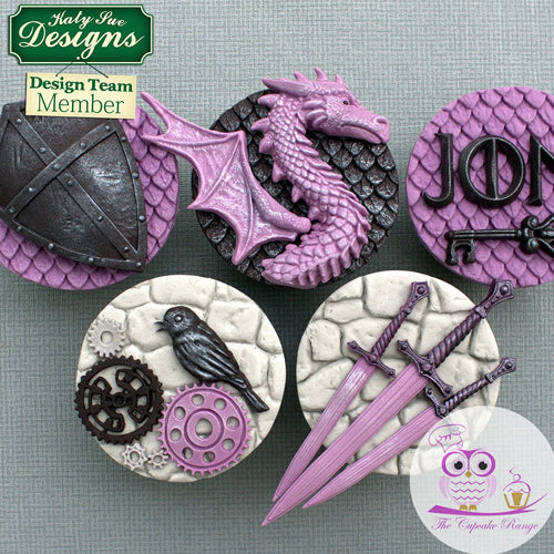 This Katy Sue Shield Silicone Mould is great for creating a battle damaged shield, perfect to go with the Swords mould also from Katy Sue Designs. The design will work nicely on top of a cake or round the edge. For added detail paint with food safe paints to really bring out the amazing battle damage texture. Size of shield 55mm x 74mm (2 x 3 inches)
