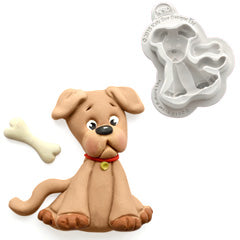 This Sugar Buttons Dog Silicone Mould by Katy Sue was designed by Kathryn Sturrock. Kathryn has produced her own unique range of Sugar Buttons characters for 20 years, hand modelling her creations from polymer clay, her work is always in high demand. This mould features a detailed hand sculpted Dog and 3 bananas. Approx size: body 45mm x 50mm/ bone 18mm x 8 mm.