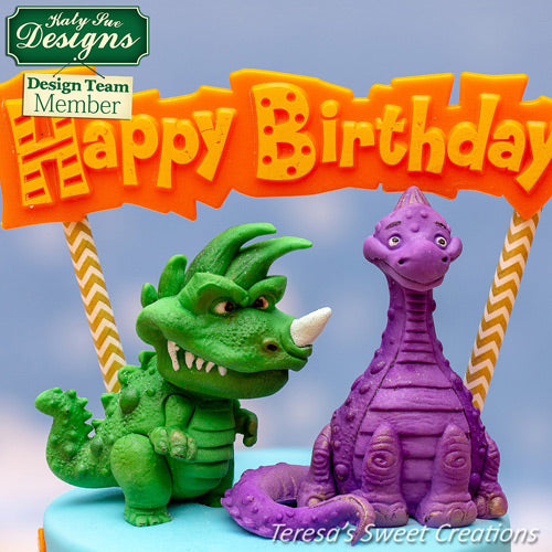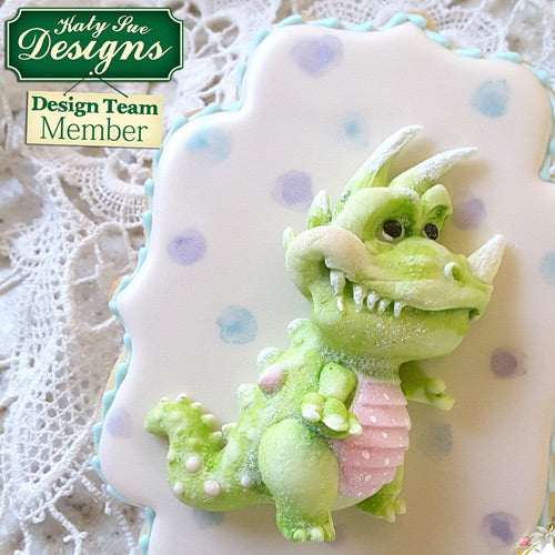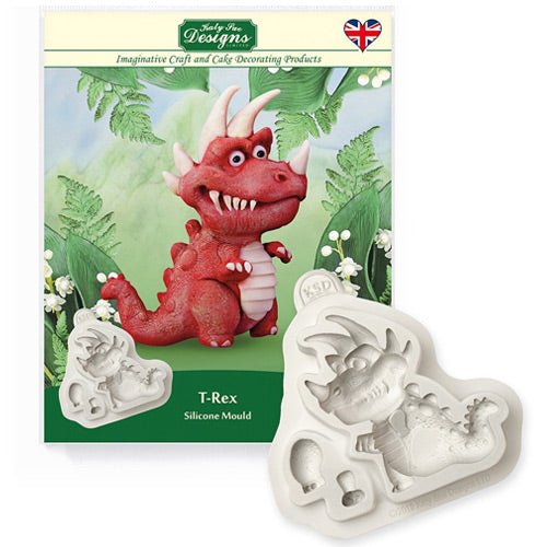 This extremely cute T-Rex dinosaur cake decorating silicone mould by Katy Sue has character all of its own and will be a firm favourite for both the maker and the receiver, this is a 3D mould has a separation front arm and leg and the character will even stand up on its own, exceptionally detailed mould making it a pleasure to colour and personalise the look to your needs.