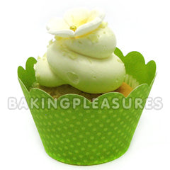 12 pieces of lovely kiwi green textured cardstock cupcake wrappers. Kiwi cupcake wrappers will fit standard (6.35cm base & 5.2cm height) cupcakes.