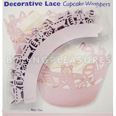 Beautiful Pink Lace Cupcake Wrappers in Baby design. Also known as Filigree Cupcake Wrappers, these lace wrappers are perfect for dressing up your Baby Shower cupcakes. Lace Cupcake Wrapper Baby Pink are for decoration purposes and are not to be baked in. Fits standard size cupcakes. Comes in a pack of 12 pieces.