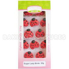 These edible lady bird cupcake toppers are a quick and easy way to decorate your cake, cupcake and desserts. Each lady bird cupcake topper measures approximately 20mm. Comes in a pack of 12 pieces.