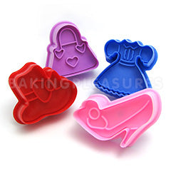 This lady plunger cutter set includes 4 lady themed spring loaded plunger cutters which can be used to cut and emboss cute lady shapes: