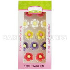These edible large sugar flower cupcake toppers are a quick and easy way to decorate your cakes, cupcakes and desserts. Each large sugar flower cupcake topper approximately 21mm. Comes in various colours and packaged in a pack of 12 pieces.