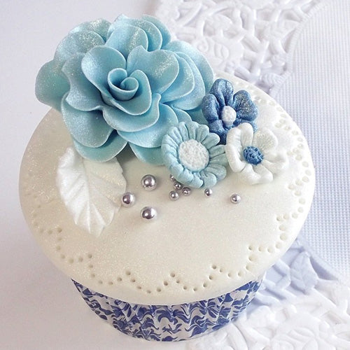 This highly detailed Little Flowers Silicone Mould by Katy Sue Designs is great for moulding flower decorations for your cupcakes and cakes. There are 4 different flower designs on this mould. This mould is made in the UK and are made with FDA compliant food grade silicone. Can be used for sugar paste, flower paste, modelling paste, marzipan, chocolate, candy, boiled sugar, cold porcelain, salt dough, air drying clays and embossing powder.
