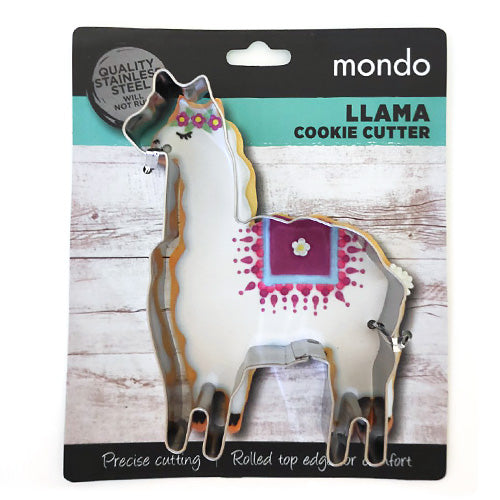 This llama stainless steel cookie cutter is great for cutting out llama shapes out of cookies, pastries and fondant. Made out of stainless steel. Measures approximately x width and x high.