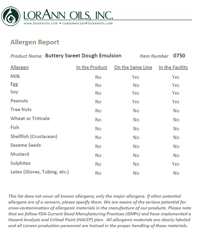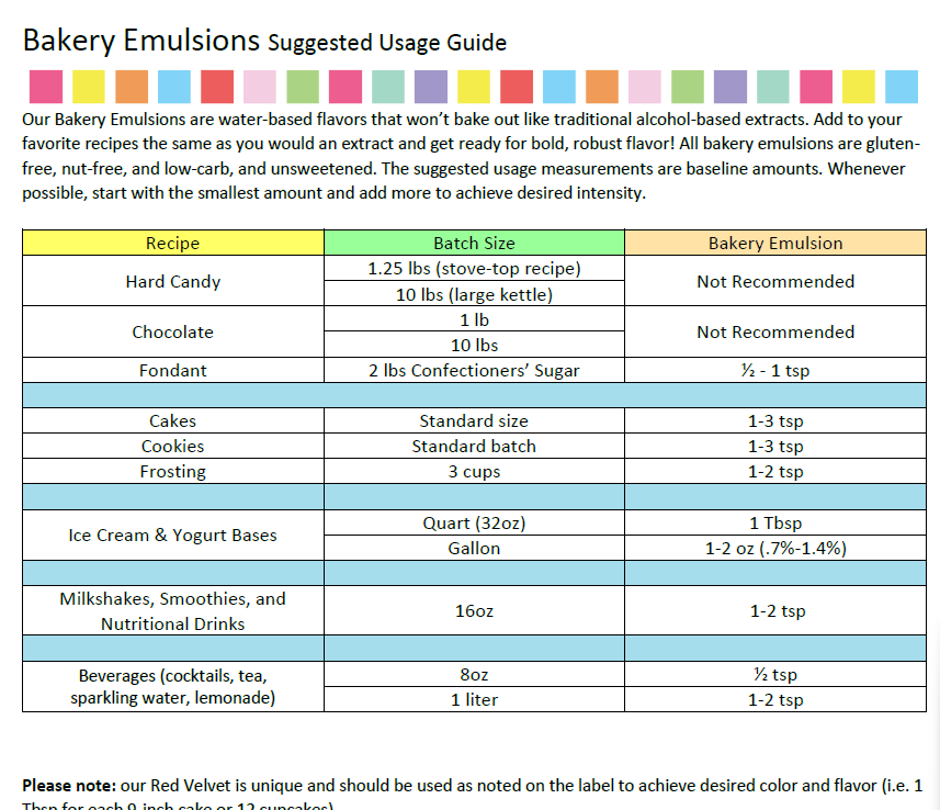 Lorann Bakery Emulsions are water-based flavours that won't bake out like traditional alcohol-based extracts. These flavourings are formulated to be the same strength as an extract, but instead of the flavour being diluted in alcohol, it is suspended in a water-based. Made in USA.