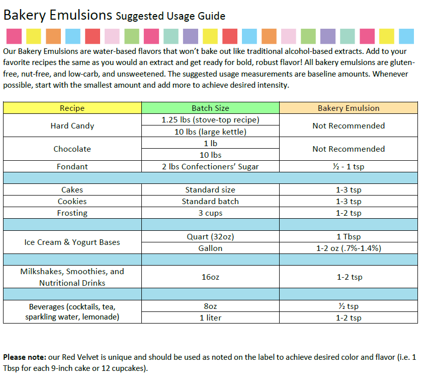 Lorann Bakery Emulsions are water-based flavours that won't bake out like traditional alcohol-based extracts. These flavourings are formulated to be the same strength as an extract, but instead of the flavour being diluted in alcohol, it is suspended in a water-base. Made in USA.