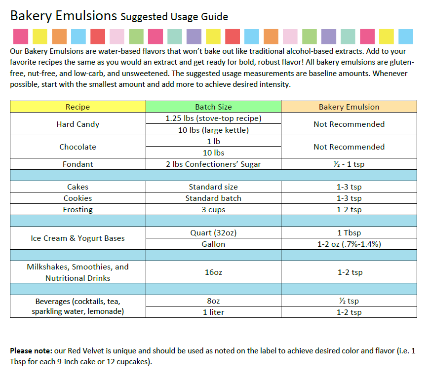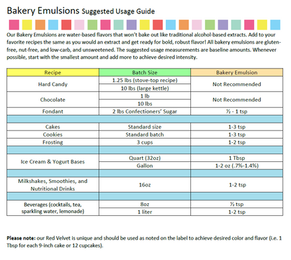 Formulated for baking, LorAnn Bakery Emulsions are water-based and hold their flavour better than traditional alcohol-based extracts. Just use the same amount as you would an extract — and enjoy a more intense, long-lasting flavour in every bite. Made in USA.