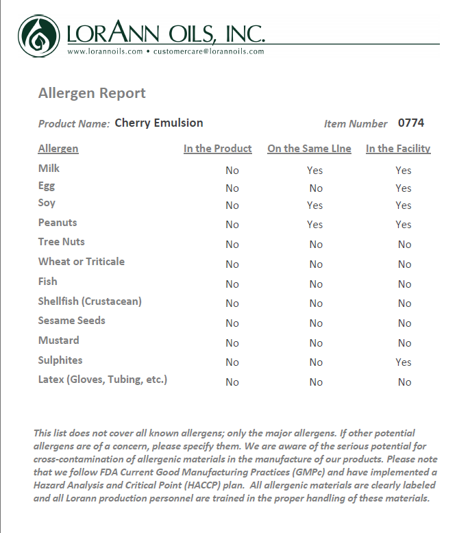 Lorann Bakery Emulsions are water-based flavours that won't bake out like traditional alcohol-based extracts. These flavourings are formulated to be the same strength as an extract, but instead of the flavour being diluted in alcohol, it is suspended in a water-based. Made in USA.