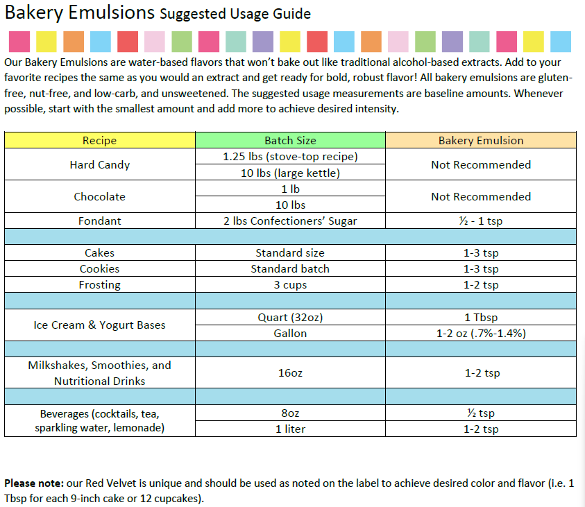 Lorann Bakery Emulsions are water-based flavours that won't bake out like traditional alcohol-based extracts. These flavourings are formulated to be the same strength as an extract, but instead of the flavour being diluted in alcohol, it is suspended in a water-base. Made in USA.