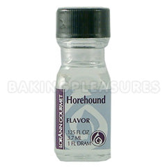 This LorAnn Oils Horehound Flavour is 3 to 4 times stronger than grocery store extracts. When substituting LorAnn Oils Horehound Flavour for extracts, use 1/4 to 1/2 teaspoon for 1 teaspoon of extract. LorAnn Oils Horehound Flavour are not oil based, does not contain vegetable oil and unlike extracts it's flavour does not diminish when exposed to high heat. LorAnn Oils Horehound Flavour is suitable for hard candy, candy centers, fondants, frostings, fudges, cakes, cookies, brownies and sweet breads. Kosher Certified. Gluten Free & Sugar Free Contains: Artificial flavour, Alcohol. Soluble in water. Appropriate for use in chocolates and coatings. Each bottle contains 1 dram which is approximately 3.7ml.