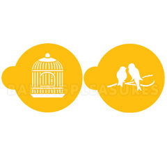 This Love Birds Cookie Stencils by Designer Stencils is a highly detailed stencil made out of heavy duty plastic for repeat use and cut using precision lasers. This stencil set features 2 stencil, one love bird & one bird cage. The designs are made to fit a 2.75" round cookie or larger. This stencil can be used with airbrush, dust, buttercream and royal icing. Made out of high quality 10 mil food grade plastic. Instructions included.