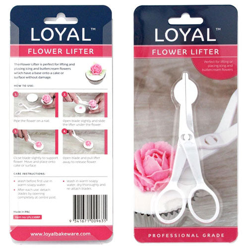 This Loyal Flower Lifter is great for lifting and placing icing and buttercream flowers which have a base onto a cake or surface without damage. Plastic food grade material.