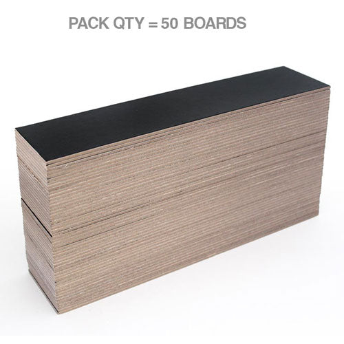 Comes in a pack of 50 dessert boards each board measuring approximately 2mm thickness and 280x65mm.