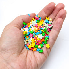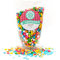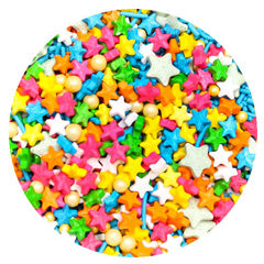 This Magical Sprinkle Mix by Sugar Crafty is a great colourful combination of stars, pearls & jimmies. Coordinates with a multitude of colour schemes and on a range of cakes, cookies, cupcakes and other sweet delights. Comes in a 190g bag.