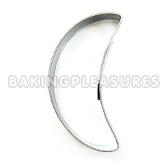 Crescent or moon shaped mini cookie cutters. Made out of sturdy silver tin. Mini Crescent Cookie Cutter measures approximately 1.5-2 inches.