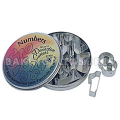 Have fun learning your 123's while you bake or eat your cookies, complete number cookie cutter set. Comes in a tin case with 9 cutters (0-9). Six doubles up as a nine. Each number cutter measures approximately 3.5x2.5cm. Made out of sturdy tin.