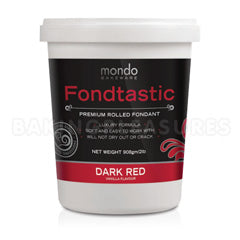 This Mondo Fondtastic Premium Rolled Fondant Dark Red is a premium quality, non stick, pliable fondant icing that is easy to use and produces a high quality finish. It has a tasty vanilla flavour . Comes in a 908b (2lb) tub.